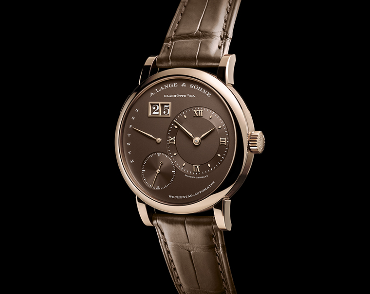 LANGE 1 DAYMATIC ในตัวเรือนฮันนี่โกลด์ ขับเคลื่อนด้วยกลไกอัตโนมัติ คาลิเบอร์ i L021.1 ที่พัฒนาและผลิตขึ้นภายในโรงงาน