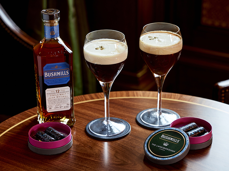 นอกเหนือจาก The Velvet Shamrock แล้ว The Library Bar ยังนำเครื่องดื่มซิกเนเจอร์ Lanesborough Irish Coffee กลับมาให้บริการอีกครั้ง โดยยังคงรังสรรค์ร่วมกับ Bushmills Irish Whiskey เช่นเดิม