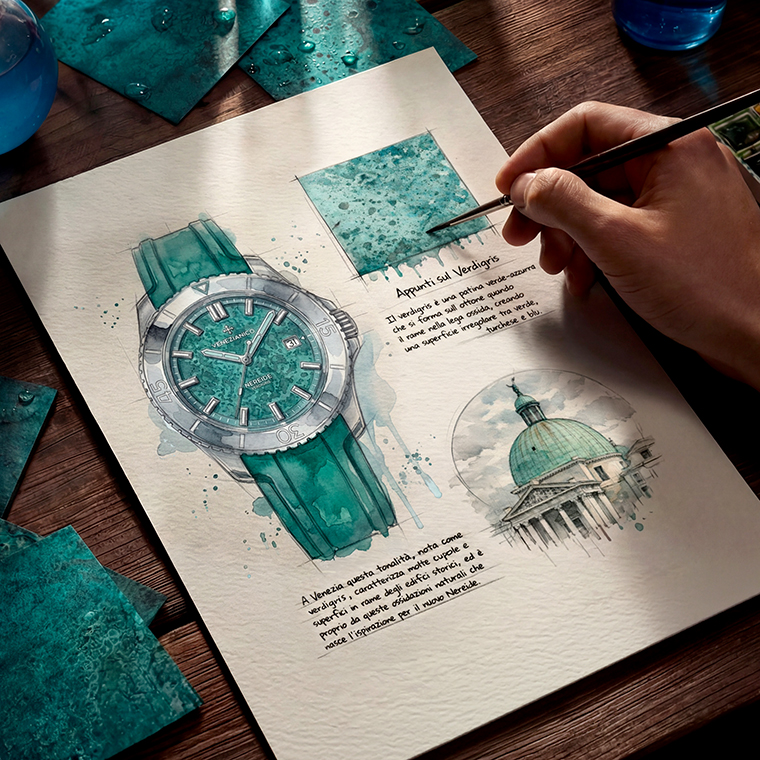 จากแรงบันดาลใจนี้ สองพี่น้องผู้ก่อตั้งแบรนด์ Alberto Morelli และ Alessandro Morelli ซึ่งเติบโตมาพร้อมความหลงใหลในเมืองแห่งลากูน ได้นำเสนอ Nereide Verdigris นาฬิกาดำน้ำรุ่นใหม่ที่ถ่ายทอดเสน่ห์ของโลหะเวนิสลงบนหน้าปัดอย่างมีเอกลักษณ์