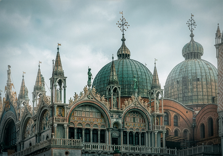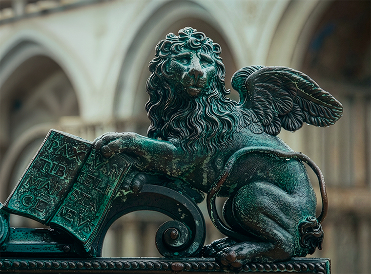 เมือง Venice คือสถานที่ที่เปลี่ยนแปลงอยู่ทุกวันอย่างเงียบงัน กระแสน้ำของลากูน อากาศเค็มจากทะเล และความชื้น ล้วนค่อย ๆ หล่อหลอมโลหะที่ประดับอยู่ตามสถาปัตยกรรมของเมือง เปลี่ยนทองแดงและทองเหลืองให้กลายเป็นพื้นผิวที่มีชีวิต เปี่ยมไปด้วยเฉดสีเขียวและเทอร์ควอยซ์อันน่าหลงใหล