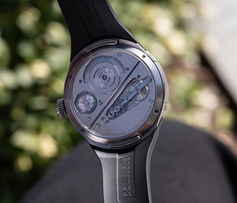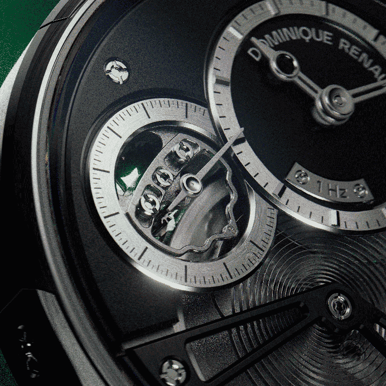 Dominique Renaud เป็นที่รู้จักจากการผลักขีดจำกัดของอวัยวะควบคุมจังหวะ โดยเฉพาะบาลานซ์ความถี่สูงมากแต่มีแอมพลิจูดต่ำ: 12 เฮิรตซ์ ที่เพียง 30 องศา ในขณะที่ค่าเฉลี่ยของอุตสาหกรรมอยู่ระหว่าง 2.5 ถึง 5 เฮิรตซ์ แนวทางสุดขั้วนี้สะท้อนจิตวิญญาณของเขาในฐานะนักสำรวจและนักประดิษฐ์อย่างชัดเจน และประสบการณ์นั้นได้กลายเป็นพื้นฐานของการตั้งคำถามในปัจจุบัน—เพื่อทำความเข้าใจผ่านการลงมือจริงว่า “ความถี่” ส่งผลต่อพฤติกรรมของกลไกอย่างแท้จริงอย่างไร “หนึ่งในวิธีแก้โจทย์ของการทำนาฬิกา คือการเข้าหาปัญหาผ่านขั้วตรงข้ามของมัน” Dominique Renaud กล่าว