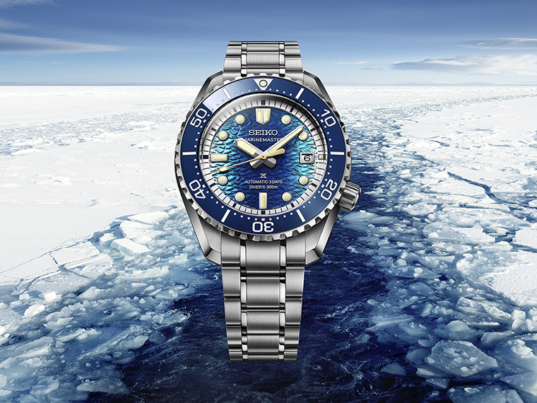 Prospex Marinemaster โดยรุ่นแรกคือ Seiko Prospex Marinemaster 1968 Heritage Diver’s Watch JAMSTEC Limited Edition รหัสรุ่น HBF002 ผลงานจากความร่วมมือเรือนนี้โดดเด่นด้วยหน้าปัดพื้นผิวรูปแบบใหม่ ซึ่งถ่ายทอดภาพร่องรอยที่เรือตัดน้ำแข็งทิ้งไว้ขณะเคลื่อนผ่านผืนน้ำแข็ง เปรียบเสมือนการวิจัยในเขตอาร์กติกที่กำลังเปิดเส้นทางสู่อนาคต ด้วยเฉดสีฟ้าแบบไล่ระดับในแนวตั้งที่ค่อยๆ เข้มลึกสู่ศูนย์กลาง ได้รับการเคลือบด้วยชั้นใสหนาพิเศษและขัดเงาอย่างประณีต สะท้อนความลึกใสบริสุทธิ์ดุจผลึกของมหาสมุทรอาร์กติกที่ไร้ขอบเขต ผสานกับขอบตัวเรือนเซรามิกสีน้ำเงินช่วยขับเน้นความงดงามของหน้าปัดให้โดดเด่นยิ่งขึ้น พร้อมมอบคุณสมบัติทนทานต่อรอยขีดข่วนได้อย่างยอดเยี่ยม