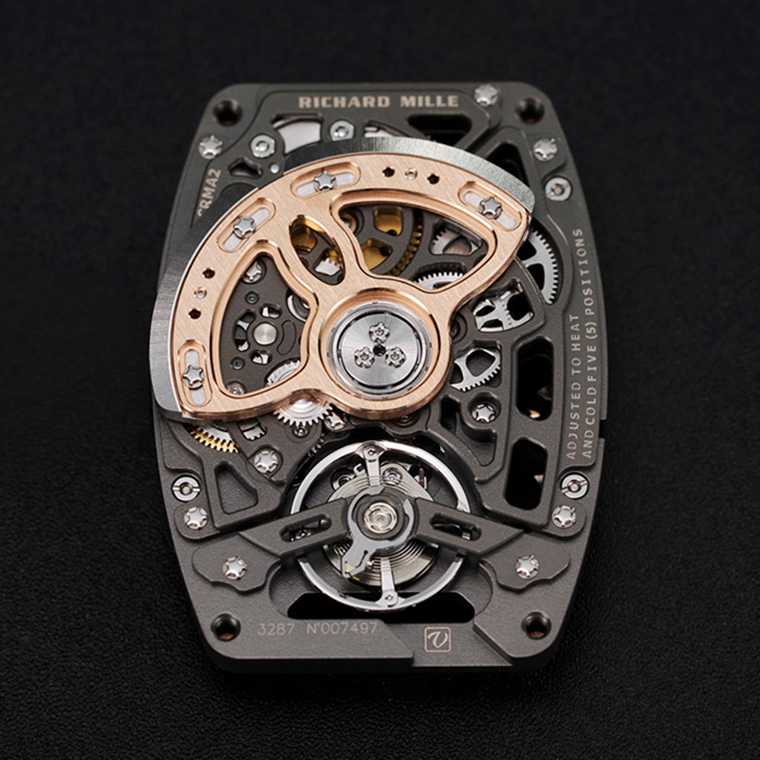 การประดับอัญมณีบนขอบตัวเรือน ถือเป็นหนึ่งในไฮไลต์สำคัญของคอลเลกชัน และยังเป็นความท้าทายอย่างยิ่ง เนื่องจากความแข็งสูงของวัสดุ รูปแบบการฝังอัญมณีแบบ mitraillage ต้องการความแม่นยำระดับสูงสุด ข้อต่อตัวเรือนที่รังสรรค์ด้วยทองและอัญมณีแต่ละเม็ดถูกฝังด้วยมืออย่างประณีต สืบสานงานฝีมือระดับสูงที่เป็นเอกลักษณ์ของ Richard Mille