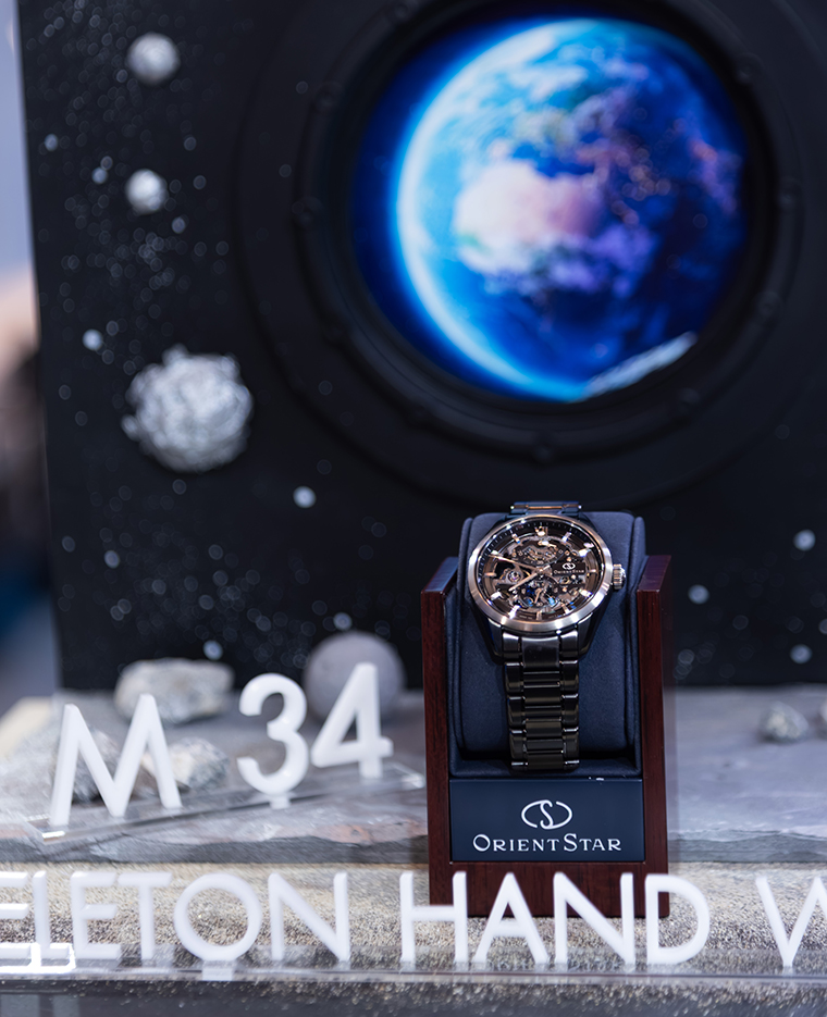 เริ่มต้นจากนาฬิกาใน M Collection รุ่น M34 F8 Skeleton Hand Winding แบบลิมิเต็ดอิดิชั่นเพื่อการฉลองวาระครบรอบ 75 ปีของ ORIENT STAR ที่ผลิตขึ้นในจำนวนเพียง 430 เรือนสำหรับการจำหน่ายทั่วโลก เพื่อเป็นหนึ่งในนาฬิกาเรือนพิเศษสำหรับคอลเลคชั่น Contemporary โดยมีหน้าปัดที่ได้รับแรงบันดาลใจมาจากภาพ ของฝนดาวตกเพอร์ซิอิดพร้อมผสมผสานเข้ากับชุดกลไก ในนาฬิการูปแบบสเกเลตันอันล้ำสมัยที่มีการตกแต่งพื้นผิว ทั้งด้านหน้าและด้านหลังให้เสมือนลวดลายอันงดงามของอุกกาบาต ที่สร้างความน่าหลงใหลและความฉงนเกี่ยวกับเรื่องราวของจักรวาลอันกว้างใหญ่