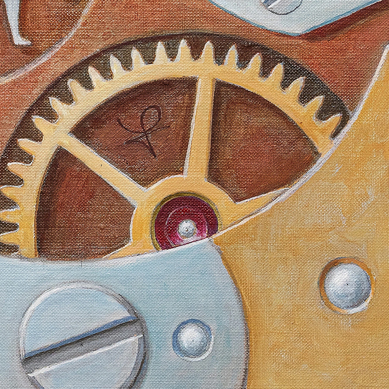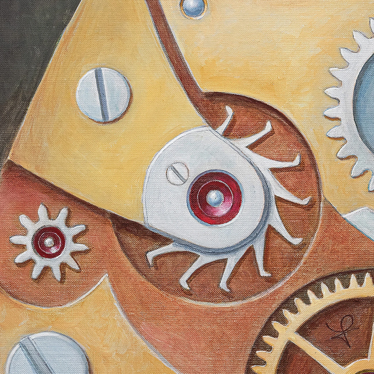 ภายในภาพ Sonya กลายเป็นศูนย์กลางของไมโครคอสมอสของตนเอง ร่างของเธอถูกประกอบขึ้นจากองค์ประกอบของกลไกนาฬิกา ซึ่งก่อให้เกิดสถาปัตยกรรมภายในที่ซับซ้อน อาร์คีไทป์นี้ทำหน้าที่เป็นแบบจำลองทางศิลปะของจิตสำนึกเชิงสร้างสรรค์ และถูกสร้างขึ้นด้วยความแม่นยำเช่นเดียวกับการผลิตกลไกนาฬิกาที่ซับซ้อน ในภาพของ Sonya กลไกได้กลายเป็นอุปมาเชิงสัญลักษณ์ของจิตวิญญาณ ในฐานะแรงขับเคลื่อนของโลกศิลปะของผู้สร้างสรรค์ ภาษาแห่งกลไกถูกแปรเปลี่ยนเป็นจิตรกรรม ขณะที่องค์ประกอบของงานช่างนาฬิกาได้กลายเป็นสัญลักษณ์ของจิตสำนึก เวลา และปรัชญาของจักรวาล