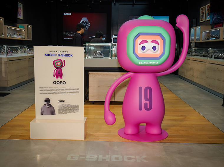 ความพิเศษของสาขานี้ คือจัดแสดงคาแรกเตอร์พิเศษจาก NIGO ครีเอทีฟไดเรกเตอร์ชื่อดังระดับโลก ผู้ออกแบบคาแรกเตอร์ “GORO” หนึ่งในคาแรกเตอร์ตัวแทนนาฬิกา 4 รุ่นสุดไอคอนิกของ G-SHOCK มาจัดแสดงภายในร้าน ซึ่งประเทศไทยเป็นประเทศเดียวในเอเชียตะวันออกเฉียงใต้และเป็นหนึ่งในไม่กี่ประเทศทั่วโลกที่ได้รับเกียรติให้จัดแสดงตัวคาแรกเตอร์ นอกจากนี้ ยังช่วยเติมเต็มความเป็นแฟชั่นและสตรีทอาร์ทให้กับพื้นที่ภายในร้านได้อย่างลงตัว