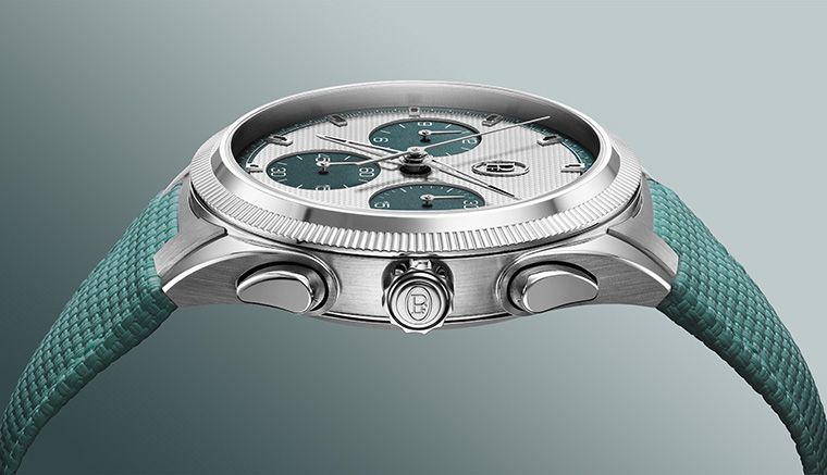 ตัวเรือนขนาด 42 มิลลิเมตร ถูกออกแบบด้วยความพิถีพิถันทั้งในด้านสัดส่วนและพื้นผิว การสลับระหว่างผิวซาตินและขัดเงาสร้างจังหวะของแสงที่เผยให้เห็นมิติของรูปทรงอย่างชัดเจน ขอบตัวเรือนแบบ knurled ซึ่งเป็นเอกลักษณ์ของแบรนด์ ไม่เพียงเพิ่มมิติทางสายตา แต่ยังสะท้อนรากฐานของนาฬิกาเครื่องมือที่เน้นฟังก์ชันการใช้งาน ปุ่มกดโครโนกราฟถูกผสานเข้ากับตัวเรือนอย่างแนบเนียน ขณะที่เม็ดมะยมแบบขันเกลียวช่วยให้กันน้ำได้ลึกถึง 100 เมตร