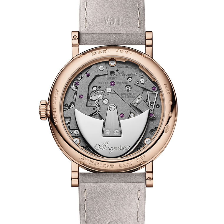 แนวคิดเดียวกันนี้ปรากฏบนฝาหลัง ซึ่งเผยให้เห็นโรเตอร์รูปครึ่งวงกลม อันเป็นการอ้างอิงโดยตรงถึงการออกแบบของ A.-L. Breguet การพัฒนาโรเตอร์ลักษณะนี้ถือเป็นการบุกเบิกในสองด้าน