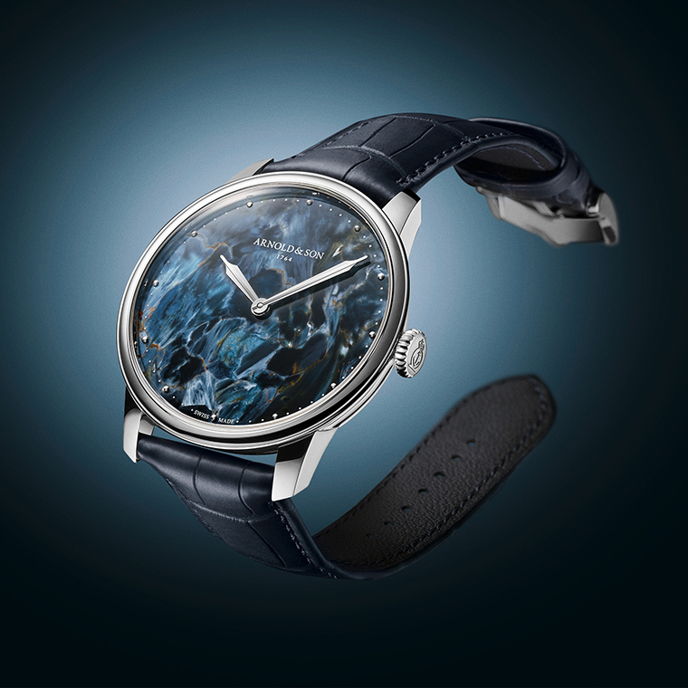 หินแร่ที่นิยมนํามาประดับตกแต่งชนิดนี้ ซึ่งบางครั้งถูกเรียกว่า “หินแห่งพายุ” เป็นหนึ่งในหินแร่กลุ่มคาลซิโดนี ถูก ค้นพบโดย Sid Pieters ที่ประเทศนามิเบียในช่วงต้นทศวรรษ 1960 Arnold & Son เลือกนําแร่ชนิดนี้มาใช้ด้วยลวดลายหมุนวนที่ละเอียดอ่อนและไม่เป็นแบบแผนตายตัว ซึ่งชวนให้นึกถึงท้องฟ้าแห่งคอร์นวอลล์ยามพายุโหมกระหน่ำ และ คลื่นฟองขาวที่ซัดสาดชายฝั่งที่ขรุขระด้วยหินผาของดินแดนในแถบนั้น