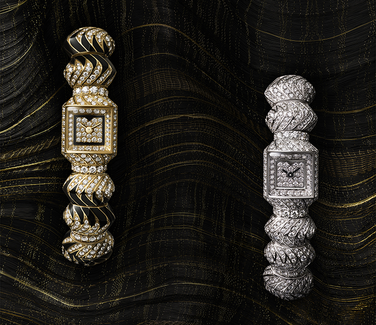 ความโดดเด่นอยู่ที่หน้าปัดทรงเรขาคณิตซึ่งโอบล้อมด้วยกรอบโอนิกซ์สีดำสนิท ภายใต้กระจกทรงโดมที่สร้างมิติการมองเห็นที่น่าทึ่ง ลายเส้นแลคเกอร์สีดำถูกบรรจงวาดด้วยมือทีละเส้นโดยช่างศิลป์แห่ง Maison des Métiers d’Art เพื่อสร้างความคมชัดให้กับงานดีไซน์ โดยแบ่งออกเป็นสองรุ่นเลอค่า ได้แก่: