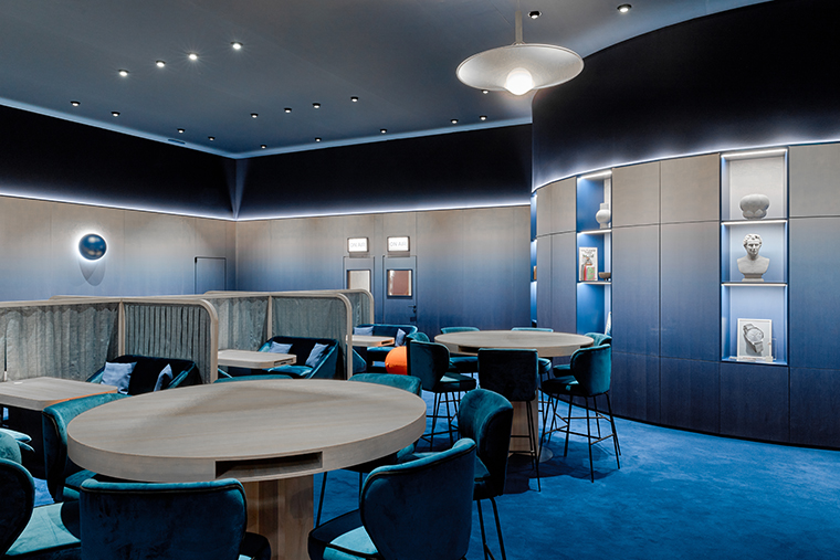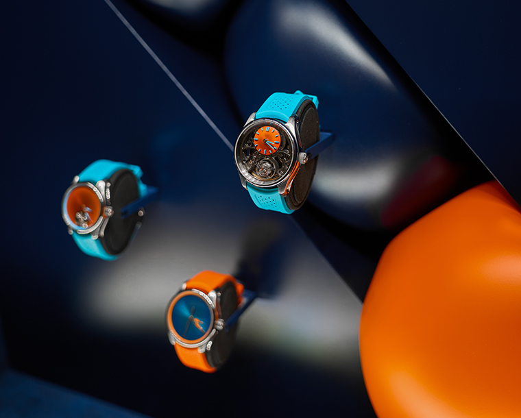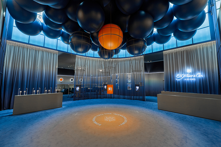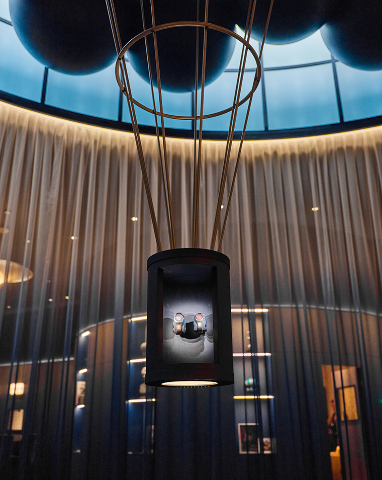 การตกแต่งด้วยบอลลูนลอยฟ้าช่วยส่งให้เรือนเวลาของ H. Moser & Cie. ดูโดดเด่นราวกับไอเดียที่กำลังโลดแล่น เสริมด้วยการตกแต่งในเฉดสี Blue Fumé อันเป็นเอกลักษณ์ที่ช่วยดึงตัวตนของแบรนด์ออกมาได้อย่างชัดเจน แขกผู้มีเกียรติได้สัมผัสกับบรรยากาศที่รู้สึกโปร่งสบาย อบอุ่น และแฝงไปด้วยความประหลาดใจที่คาดไม่ถึง
