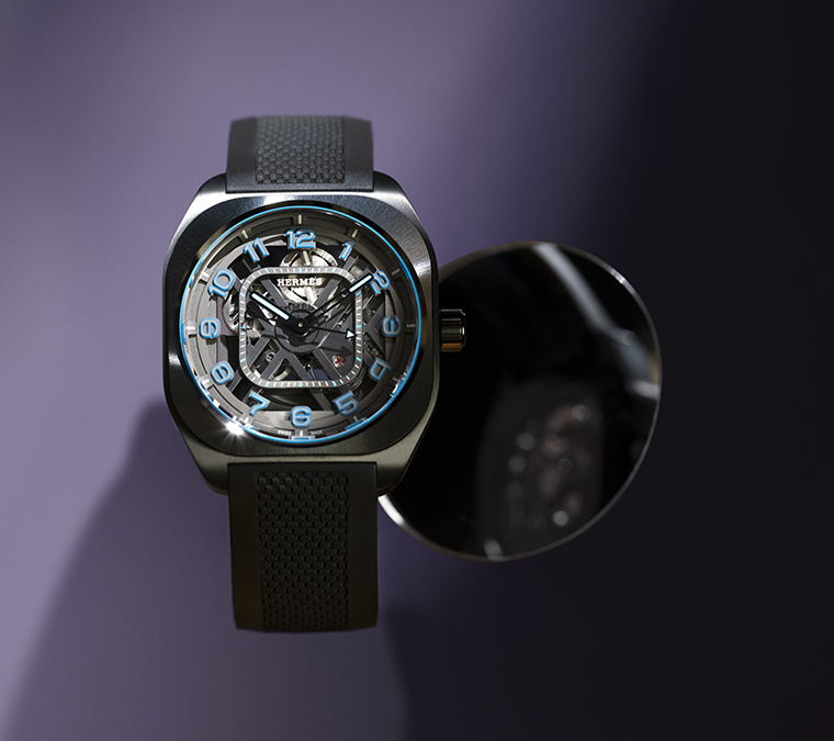 Hermès H08 Squelette, Arceau Samarcande และ Slim d’Hermès Squelette Lune คือสามผลงานสร้างสรรค์ใหม่ ซึ่งจะนำมาเปิดตัวบนพื้นที่จัดแสดงของ Hermès ในนิทรรศการ Watches and Wonders Geneva ครั้งนี้ แต่ละงานออกแบบล้วนอาศัยศิลปะฉลุโปร่งเปลือยหน้าปัด เผยความลึกลับ และสลับซับซ้อนของบรรดากลไกหลายระบบขับเคลื่อนภายใน เฉกเช่นหน้าต่างบานกว้างที่เปิดออกไปสู่ปริศนาซ่อนเร้นของโลกเวลา เพื่อสะท้อนถึงภาพรวมของเอกลักษณ์ทางการสร้างสรรค์นาฬิกาข้อมือทั้งสามสไตล์ ศิลปินนักออกแบบ ฌอง-ซิมง ร็อชจัดวางภาพมิติในรูปแบบโครงสร้างอันเต็มไปด้วยการเคลื่อนไหว จุดประกายจินตนาการเสมือนการมองผ่านเข้าไปในตัวอาคารก่อไม้ของโรงงานผลิต และได้พบกับความตระการตา เต็มไปด้วยปริศนาของบรรดาจักรกลภายในกรอบตัวเรือนนาฬิกา