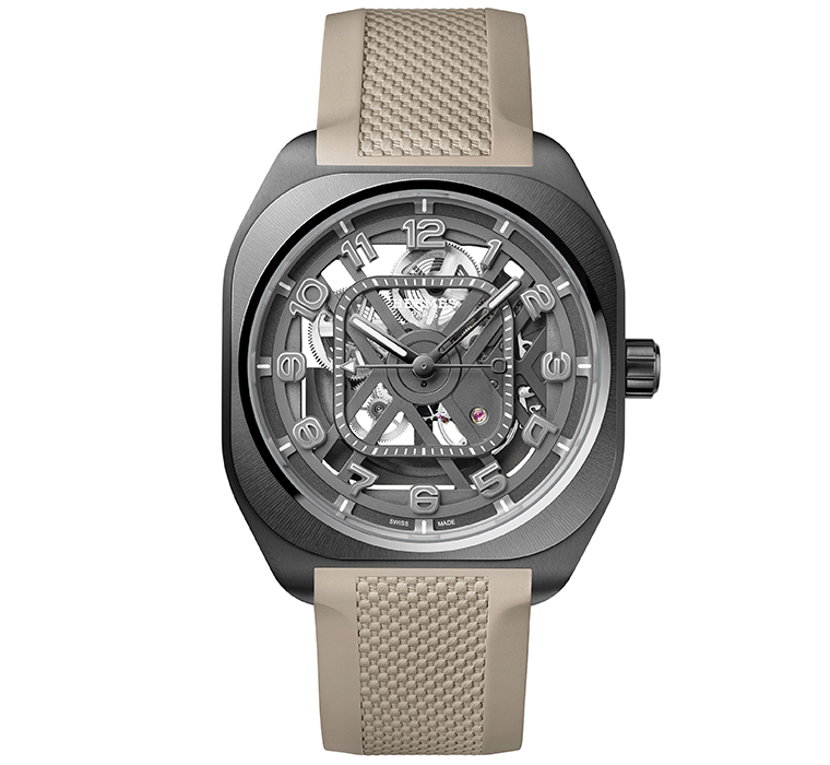 ในขณะที่นาฬิกาข้อมือ Hermès H08 ยังคงเอกลักษณ์งานออกแบบซ้อนรูปทรงหน้าปัดกลมในกรอบจัตุรัสมุมมน กระนั้น บรรดาชิ้นส่วนกลไกขับเคลื่อนซึ่งเคยถูกปิดบังไว้ภายใต้พื้นหน้าปัดกลับปรากฏ “เหมือนจะชัดเจน” ต่อทุกสายตาภายในตัวเรือนไททาเนียมขัดผิวซาตินขนาด 39 มม.