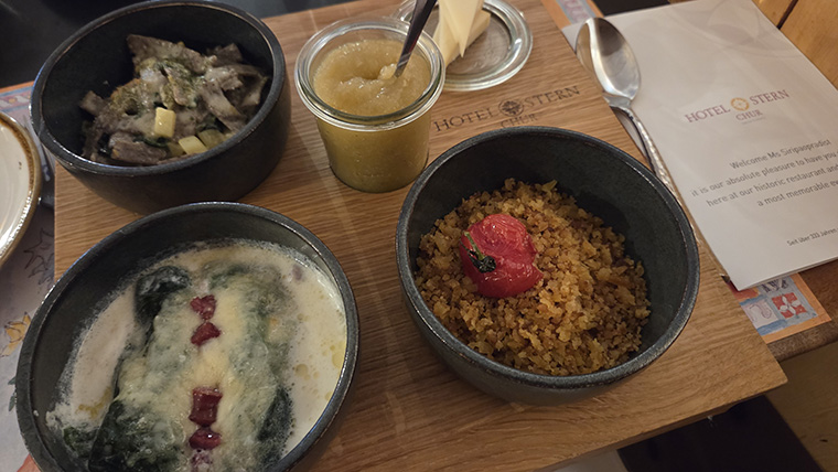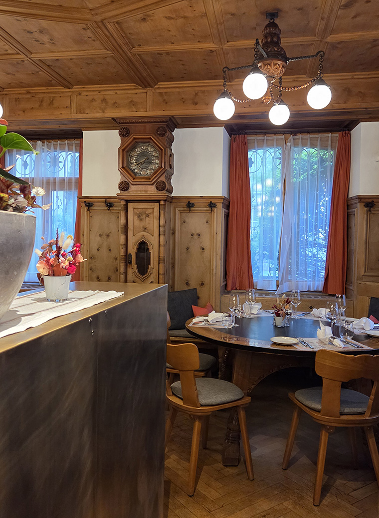 อีกหนึ่งหัวใจสำคัญของ Hotel Stern คือประสบการณ์ด้านอาหาร โดยเฉพาะห้องอาหาร Veltliner Weinstube ซึ่งขึ้นชื่อว่าเป็นหนึ่งในร้านอาหารที่เก่าแก่และดีที่สุดในภูมิภาค เมนูอาหารเน้นวัตถุดิบท้องถิ่น ปรุงในสไตล์สวิสแท้ ๆ ไม่ว่าจะเป็นเนื้อคุณภาพดี ชีสจากแคว้น หรืออาหารพื้นเมืองที่สะท้อนรสชาติของ Graubünden อย่างลึกซึ้ง บรรยากาศภายในร้านยังคงความอบอุ่นแบบดั้งเดิม เหมาะทั้งสำหรับมื้อค่ำสุดพิเศษหรือการนั่งดื่มไวน์อย่างผ่อนคลาย